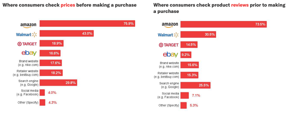 Amazon dominates e-commerce. And it appears there's nothing on the horizon that will change that. A new report from Feedvisor captures why the company has become the largest US retailer by gross sales. According to the survey of 2,000 consumers, 92% are more likely to buy products from Amazon than other e-commerce sites. In addition, 56% visit Amazon daily or a few times a week, which is up from 47% in 2019. Consumers are highly satisfied (90%) with Amazon's customer service; 95% are satisfied with search relevance; 99% are satisfied with product assortment. People also generally like Amazon's ads and consider them useful. Prime is wildly successful and continues to drive loyalty and purchase volume. According to this survey, Google is way behind as a shopping tool.