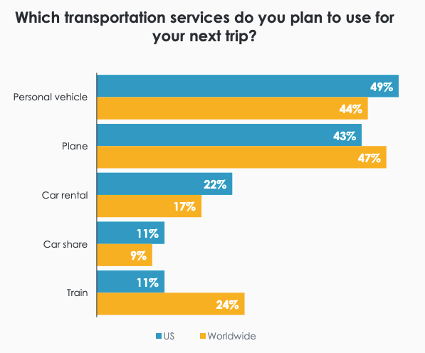 Searches for "getaways near me" have grown 100% year-over-year, according to Google. International flight queries have jumped 60%. These are leading indicators for what Inc. called the coming "vacation boom." According to a report from Criteo, more than two-thirds of Americans (and people globally) plan to travel in the second half of 2021. Air travel and hotel bookings are recovering (at differing rates), while vacation rentals are doing well. But majorities of would-be travelers are still concerned about not getting sick. Older travelers favor driving, while younger travelers are more likely to fly. Sixty percent of global travelers plan to visit family/friends within 6 months; 54% are planning leisure travel.