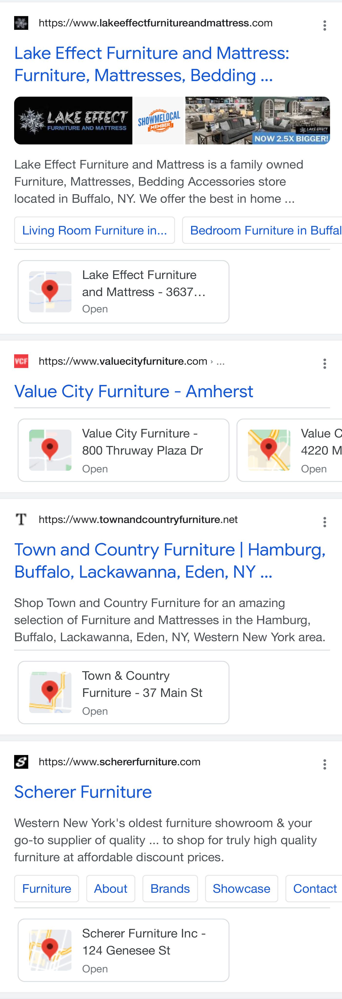 Clearly this is a test that is not very visible. It has only been seen on an iPhone and only on a "cheap furniture near me" search result. (Note: As of 6/28 the feature is now showing on Samsung & Pixel phones as well as on a broader array of non furniture search results - search screen shot at end). The Local Cards have not been found in other product categories yet. While the display of the Local Card inline in organic results is not as visible as the 3-Pack, it is a clear indicator that no matter what happens, Google is not going to stop using the Local Knowledge Graph to enhance local results. Google will also continue to try to keep users on the site for local results. But instead of not sending users to Yelp (with the Local Pack), they're also not sending them to local websites (with Local Cards). Yelp might celebrate the demise of the 3-Pack, but I am not sure most local businesses would.