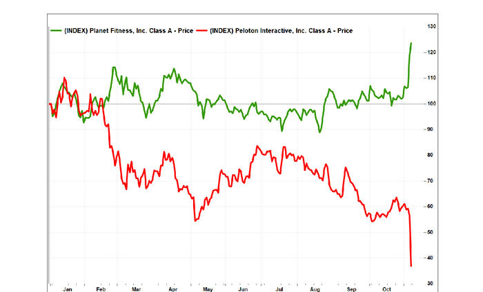 The sweeping pronouncements made about consumers "not going back" to pre-COVID behaviors appear to be incorrect or premature. People are returning to pre-COVID patterns in many cases. Gym membership is one apparent example. Articles such as "How Covid-19 Has Permanently Changed the Fitness Industry" were common last year. However, Peloton's fiscal quarter results were evidence that the virtual fitness trend may be losing muscle (the company tried to partly blame Apple). The company posted weak growth and cut its full year revenue outlook. At the same time physical gym chain Planet Fitness outperformed expectations. The latter company's CEO said membership "has nearly returned to its pre-pandemic peak." The stocks of the two companies went in opposite directions accordingly.