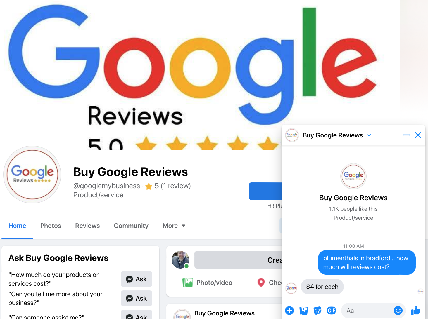 The bad news: the page was quickly taken over by a business that sells Google reviews. The good news, they are only $4.
