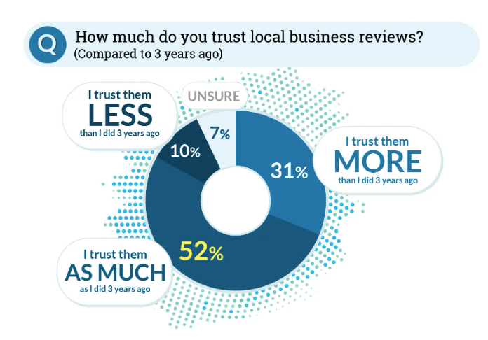 - I'm surprised that review trust remains this high; other surveys have found greater skepticism and declining trust.