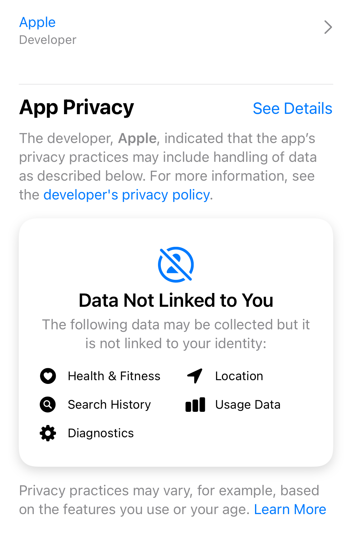 Apple requires that any app or app update has a privacy disclosure, now often called a "privacy nutrition label." The labels need to identify all of the data the developer or its third-party partners collect with a few, very explicit exceptions.