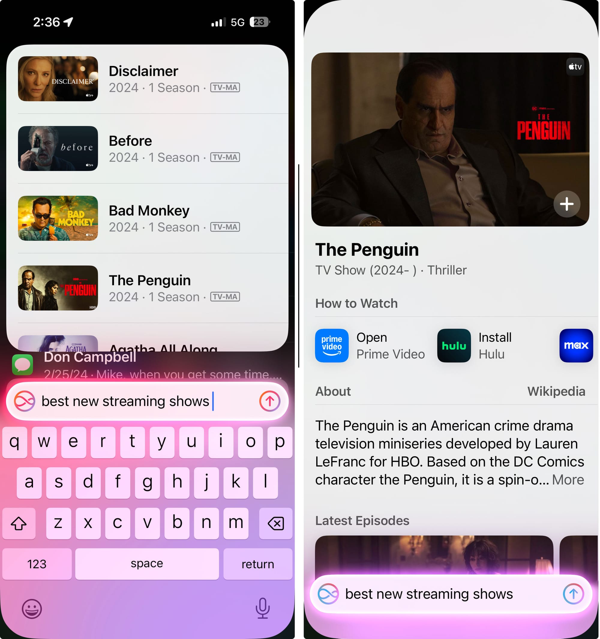 Accessing the Type-to-Siri interface on both the Mac and the iPhone is not obvious. On the iPhone it requires a double tap at the bottom of the screen and on the Mac requires fiddling with the accessibility settings to make it appear. There is also the confusion of the relationship between Spotlight search, available on all iPhones, and the full Siri 2.0 capability currently available on the iPhone 15 Pro and above.