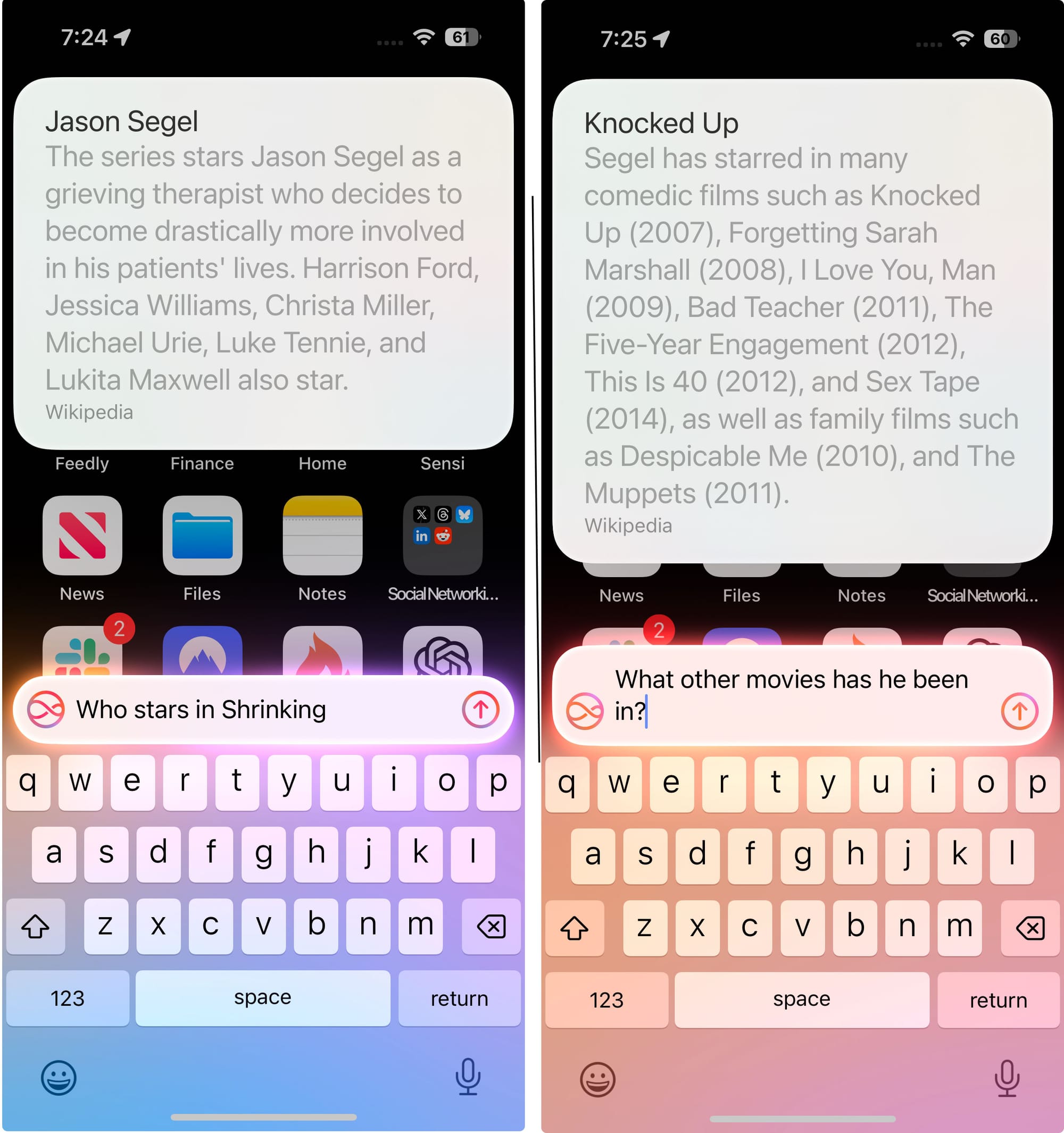 What Apple seems to be doing is adding a increasingly sophisticated AI based information retrieval to the system level of the phone. Information that once took a specialized search engine or app to retrieve can now be answered directly from a query from any screen of your iPhone.