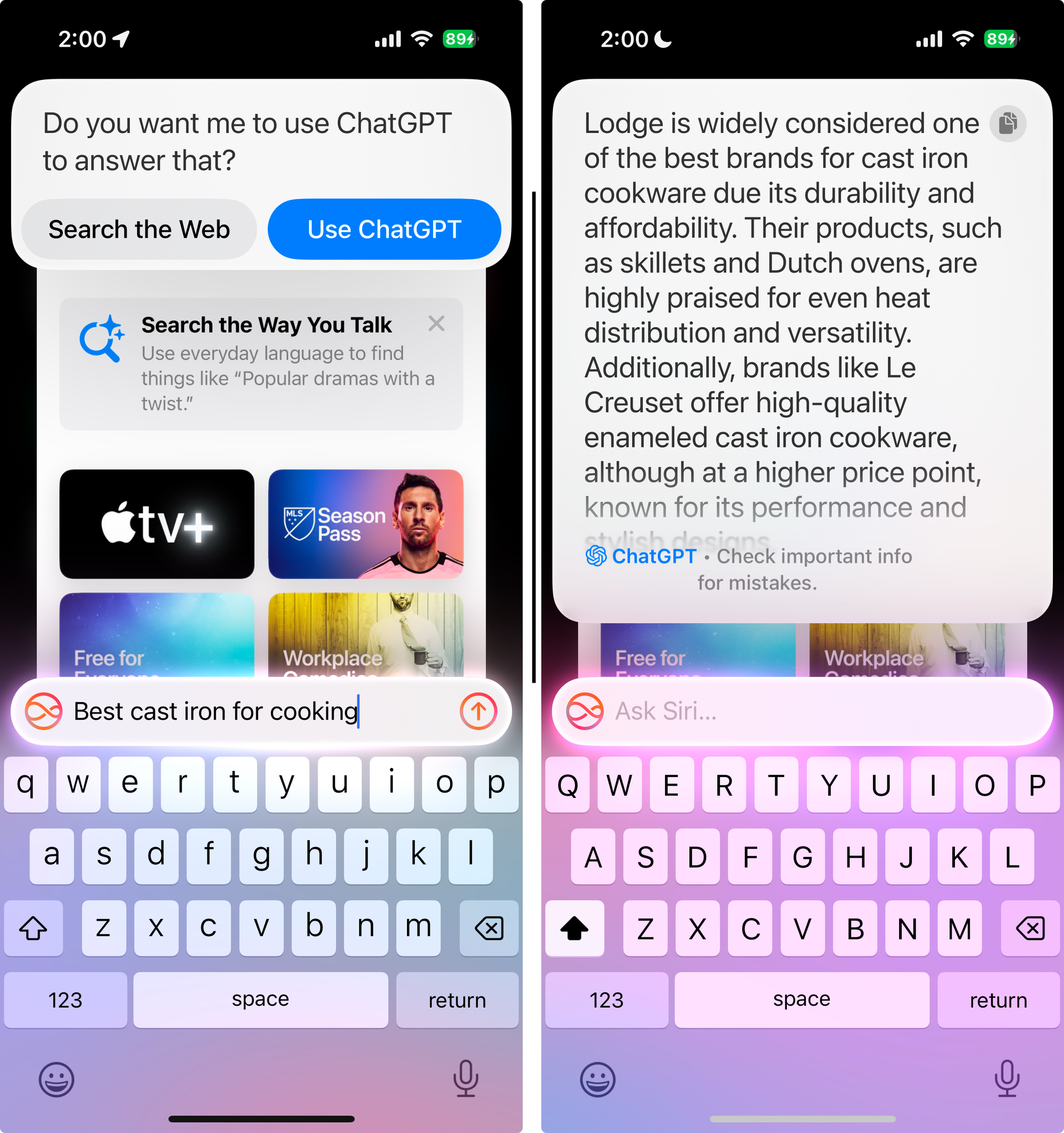 For the foreseeable future, when Siri 2.0 can't answer a given query, Apple will pass off the query to ChatGPT. And there are rumors of Siri gaining significantly more ChatGPT like conversational, generative AI features by 2026. It remains to be seen whether Apple's in-house AI models will simply compliment or replace ChatGPT.