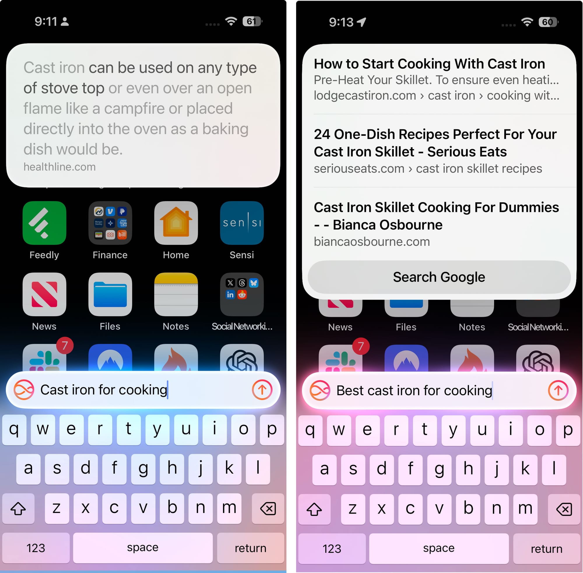 One of the more reliable results Siri now returns are YouTube recipes when you are looking for cooking ideas.