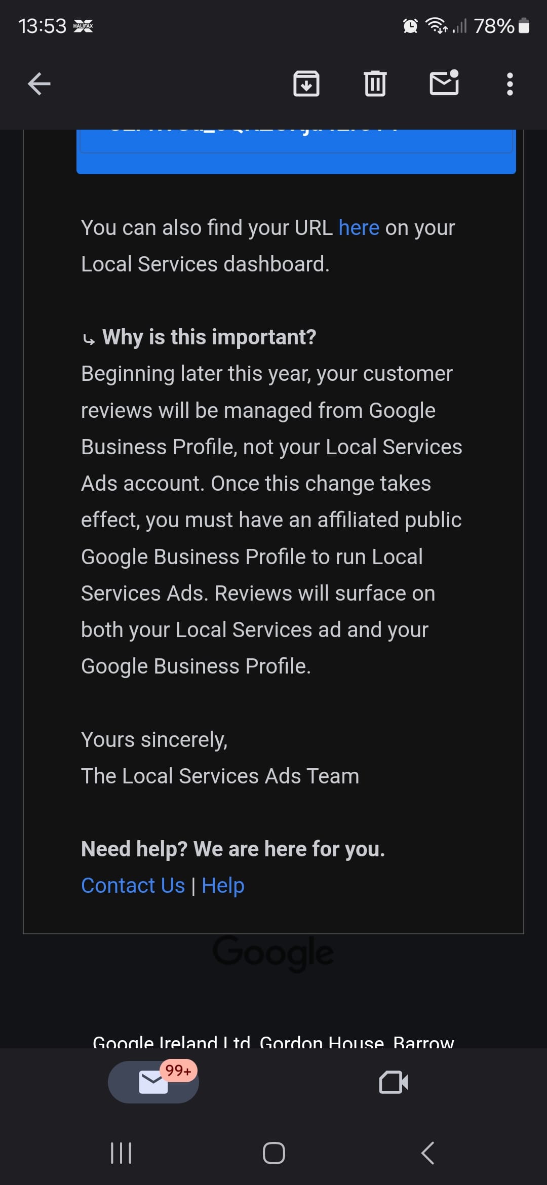 A user in the UK recently shared this LSA notification with me indicating that (at least in the UK) LSA reviews are going to be replaced with Google Business Profile reviews.