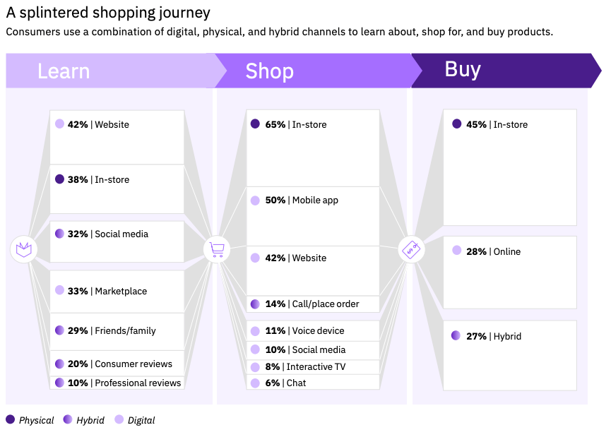 The IAB published a new report (reg. form) tracking four 2023 trends it considers "disruptive." They are: "h-commerce" (hybrid shopping), the creator economy (TikTok), the metaverse (as a shopping channel) and privacy. None of these are in fact new, except perhaps the metaverse. The IAB argues h-commerce is not omnichannel but "defined by the fusion of online and offline shopping." Examples include being in a store and buying from the retailer's website, using AR to get a more "tactile" sense of a product when not present and the increasing integration of digital tech into stores. Relying on an earlier IBM study, the IAB also points out the buying journey is now more fragmented and relies on numerous channels. (Tell us something we don't already know.) While tighter integration between online and offline shopping is new (e.g., click and collect, local inventory online) the industry is simply catching up to mostly well established consumer behaviors.