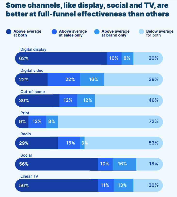 - Digital display ads, social and TV were cited as the best channels for "full funnel" effectiveness (chart above).