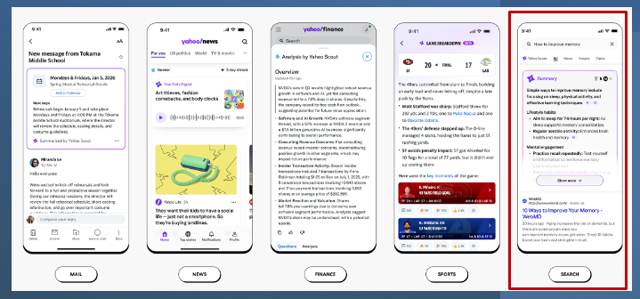 Built on what the company is calling the Yahoo Scout Intelligence Platform, the AI capabilities will be deployed in Yahoo Mail, News, Weather, Shopping, Finance, Sports and other areas of the site (desktop and mobile). In Mobile, Scout is directly available within the Yahoo Search app, which will let you toggle back and forth, as Google did initially with Gemini.