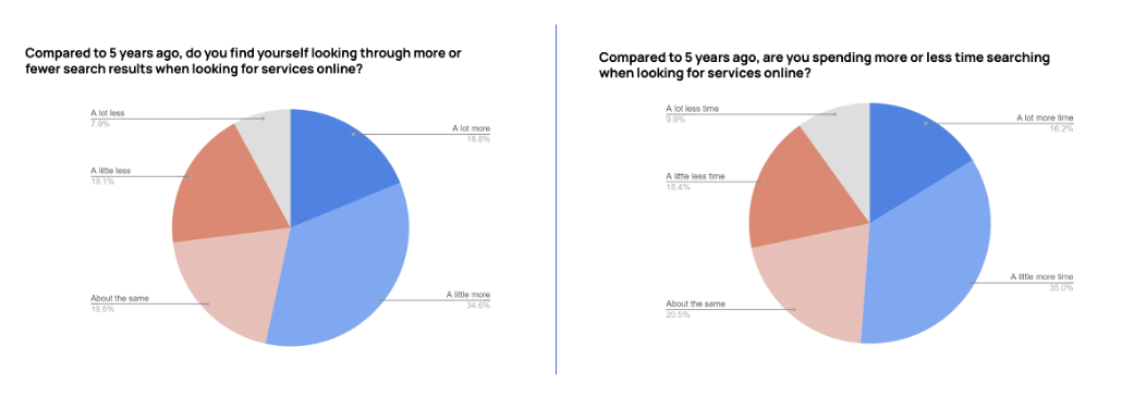 - Surveys often reflect perceptions and attitudes more than behavior. At a minimum, however, this suggests a decline in search confidence.