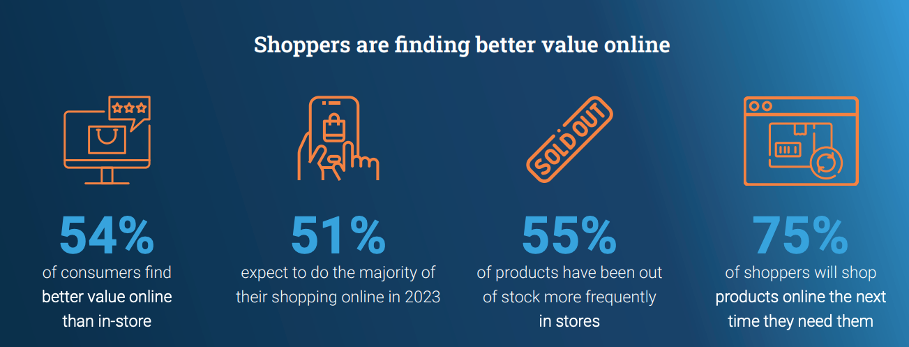 - There are three drivers of e-commerce: convenience, price and product availability. Local store inventory is still not visible enough online.