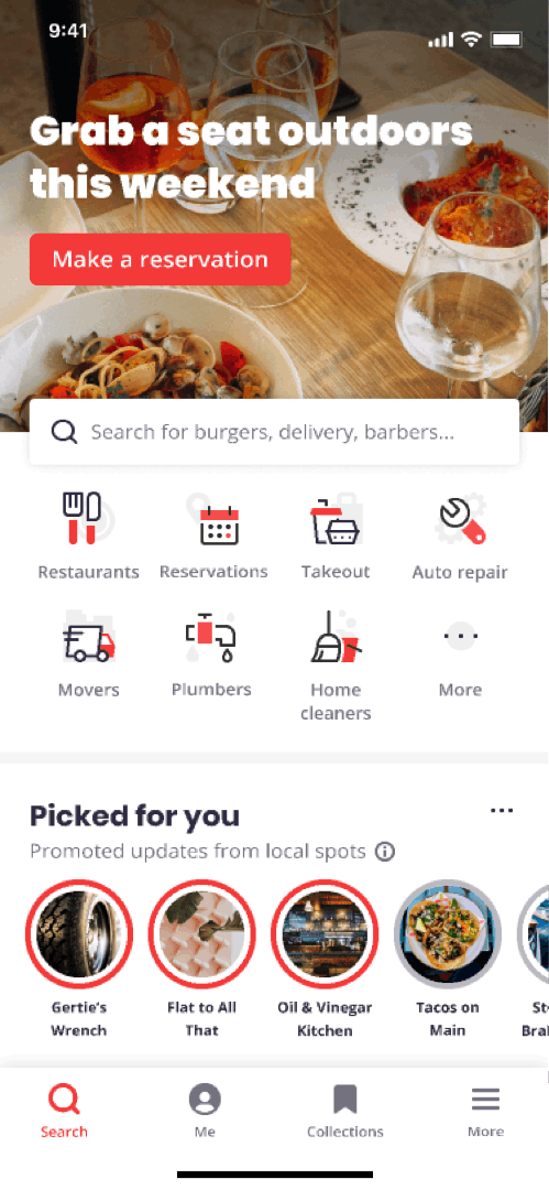Yelp has introduced a new scrollable homepage feed featuring local restaurants. It's not live for me yet, but you can see what it looks like in the .gif below. It's currently available on iOS devices in "150 metros across more than 25 U.S. states." The feed features Popular Dishes, images from consumers, "and updates directly from restaurants." Yelp says the feed is contextualized, based on user proximity to a business, content recency and reviews. Clicking on an image will take users to the restaurant's profile. Yelp Connect subscribers will see added benefits: "their posts will gain greater visibility than ever before as users will now easily discover these Connect posts right on their home feed." There's also an Instagram-like heart icon that will report likes back to the restaurant.