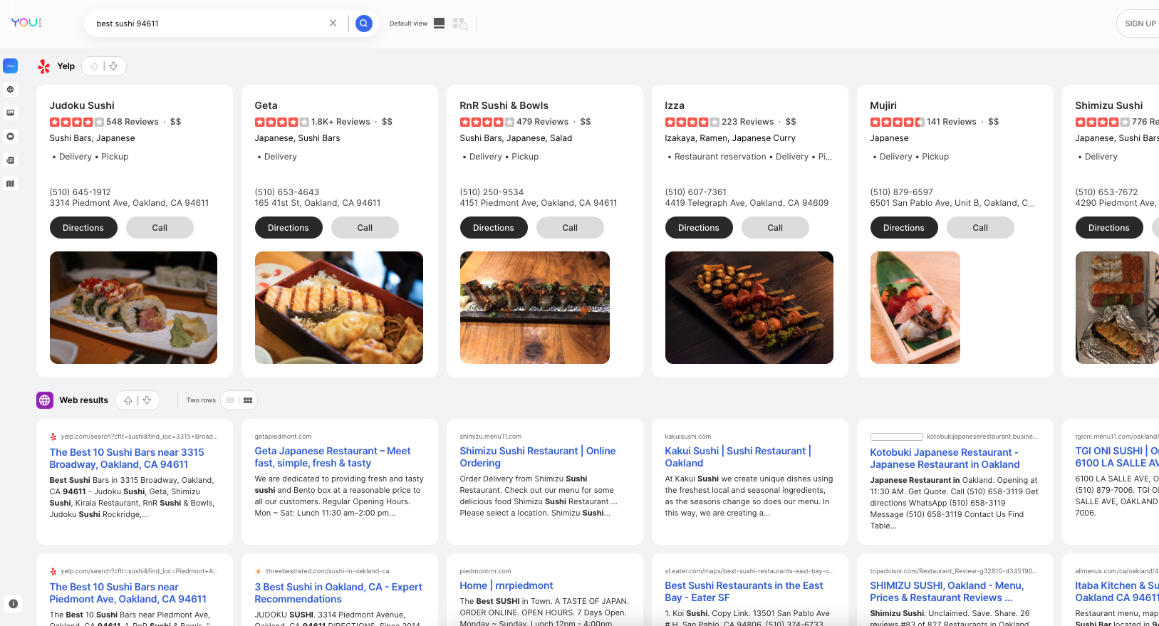 On the heels of Neeva, another search engine has launched: You.com. It appeared in public beta on Tuesday together with $20 million in funding from VCs and Salesforce CEO Marc Benioff. There are a few selling points: a different UI, privacy, no ads (for now) and customization features, which require you to sign up. Results are pulled together from multiple sources. Yelp, Tripadvisor and Reddit are prominent local information sources – as is Google. You.com's maps and "places" data come from Google. You can also run your query on Google with a click. The UI segregates results by source, although multiple sources are contained in "web results." There's an emphasis on horizontal scrolling, equivalent to the Google carousel experience. In general, it's much more scannable than Google's general organic results. Neeva's UI is similar to Google's, by comparison.