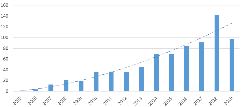 Annual Review Count of Yelp Reviews