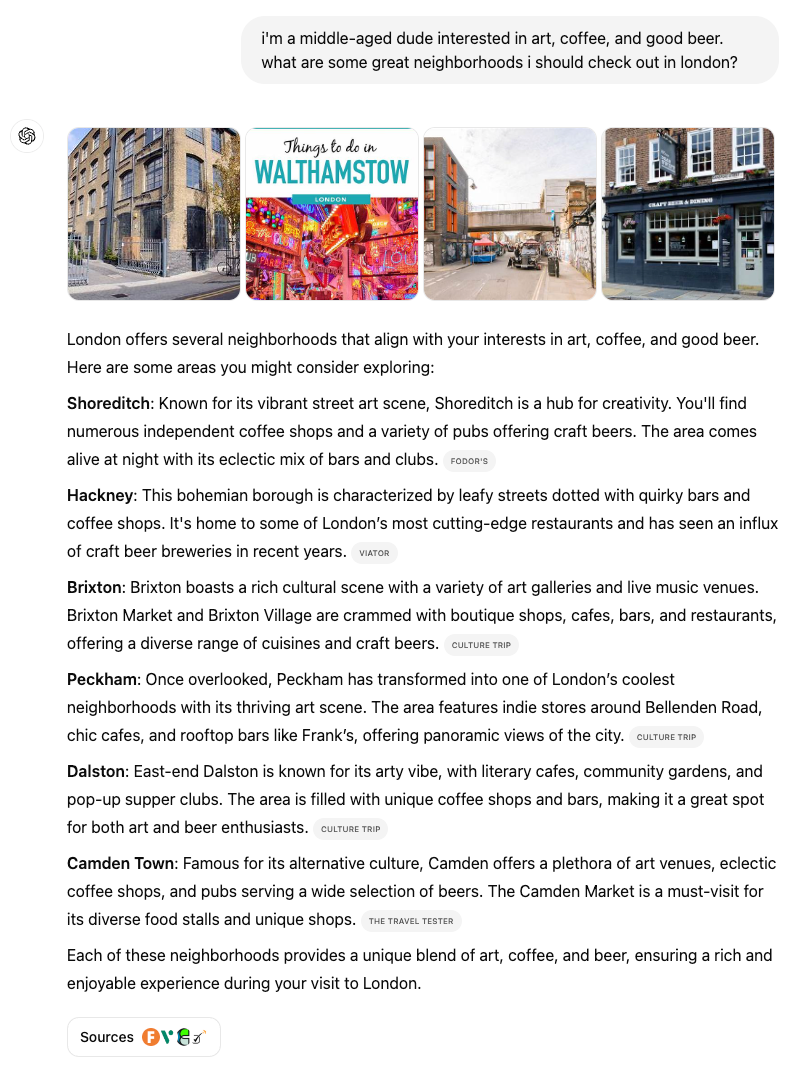 Interestingly, planning a travel itinerary is the highlighted use case in OpenAI's announcement post, so perhaps the product team spent a lot of time evaluating performance for these kinds of searches.