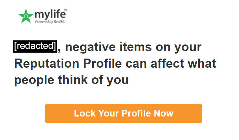Email from MyLife to an individual that already locked her profile from view